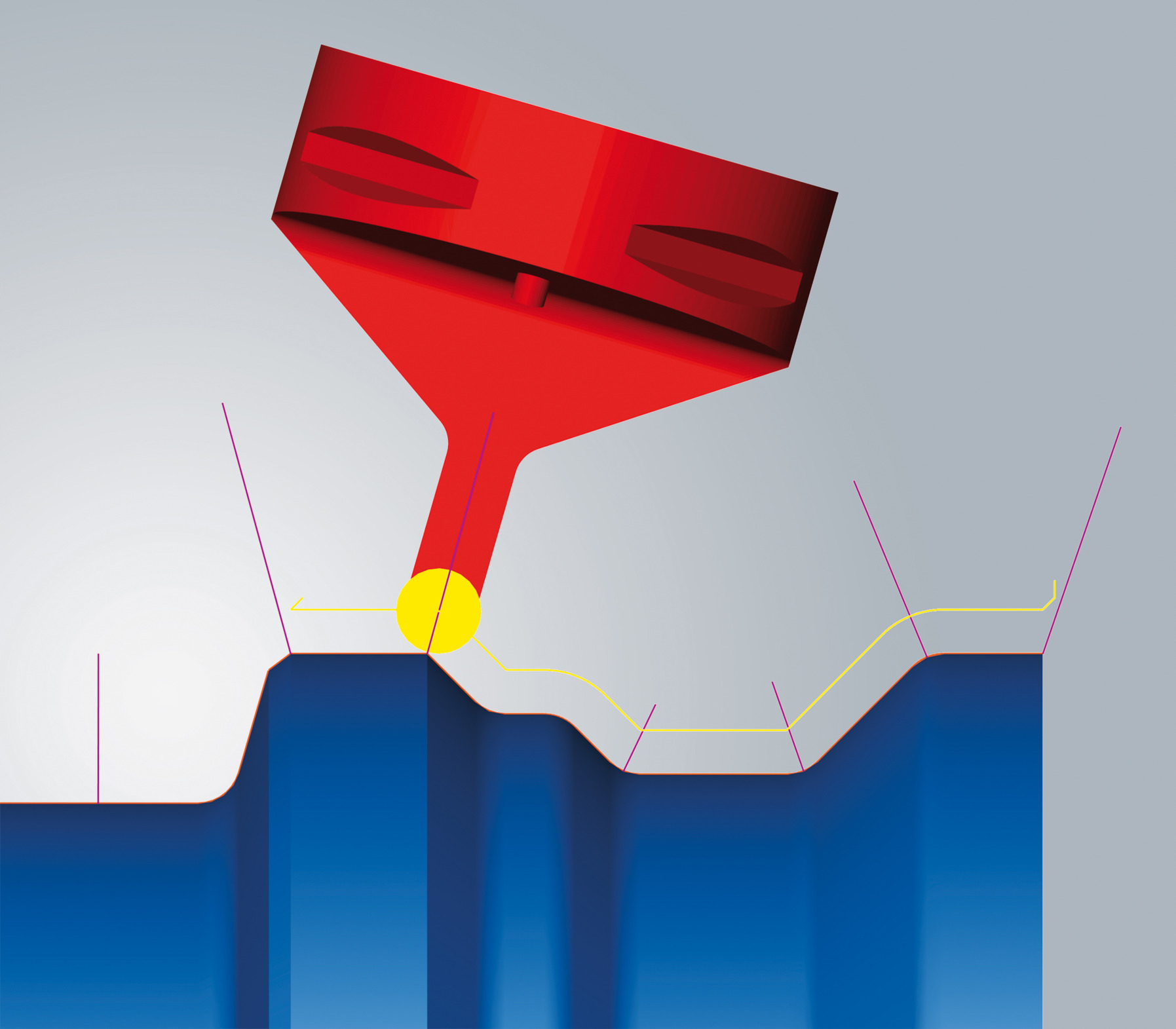Simultandrehen ermöglicht die Bearbeitung komplexer Konturen und Hinterschnitte in einem Schritt.
